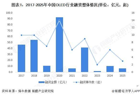 图外1:2017-2025年中邦OLED行业融资满堂境况(单元:亿元,起)